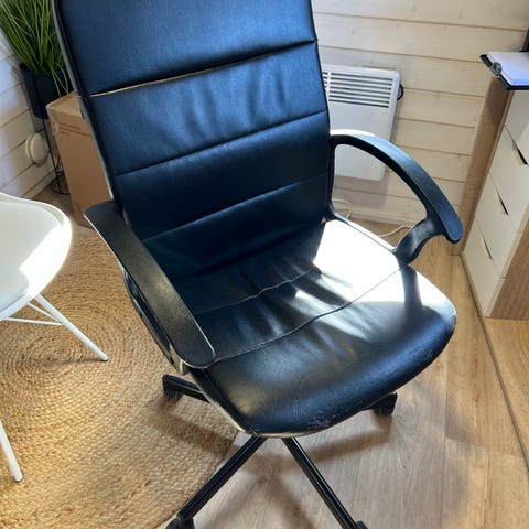 Kulunut, mutta täysin toimiva toimistotuoli.
