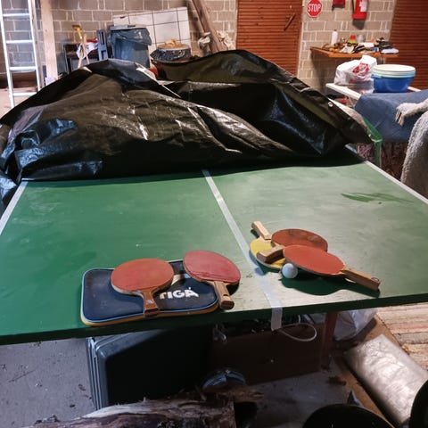 Taittuva stigan pingispöytä pinnassa maalitahroja