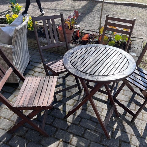 Tuolit ovat kätevästi pinottavissa. Kaupanpäälliseksi saa 4 istuintyynyä.
