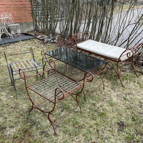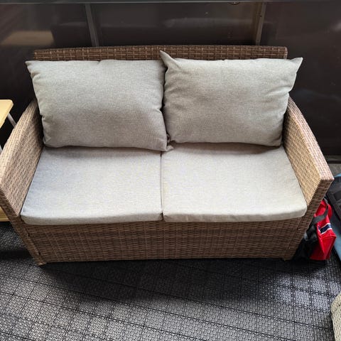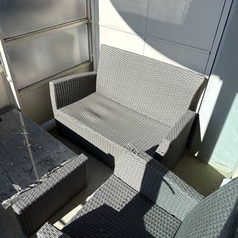 Parvekekalustesarja sohva, 2 tuolia ja pyöreä pöytä