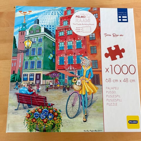 Peliko Terra Rosa -palapeli, jossa 1000 palaa. Valmiin palapelin koko on 68 x 48 cm. Kuvassa värikäs kaupunkinäkymä, jossa kahvila ja Eiffel-torni taustalla. Sopii ajanviettoon ja kokoamiseen esimerkiksi pöydälle tai palapelialustalle.