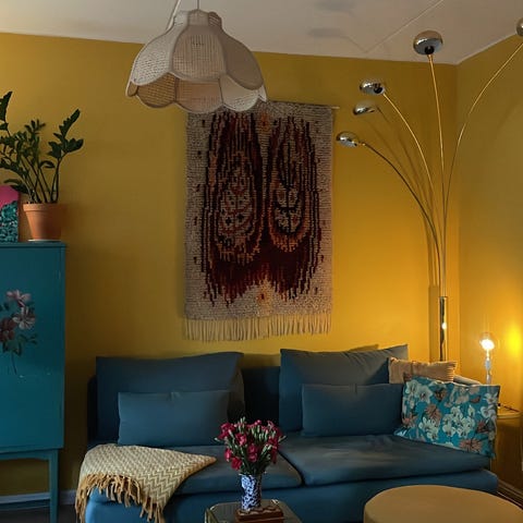Kaikki päälliset juuri pesty ja sohva imuroitu.