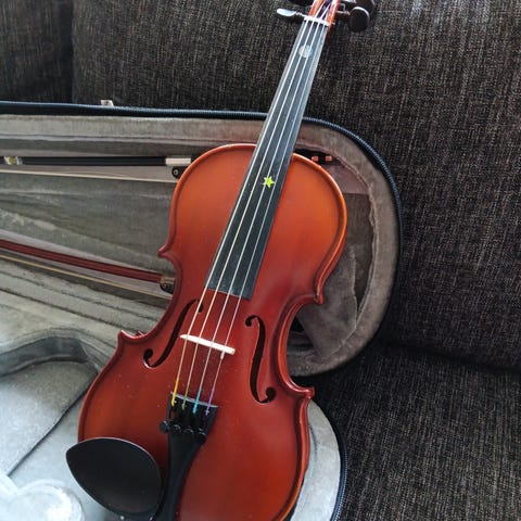 Liekö 3/4 -kokoinen viulu. Vähän risa. Hae pois ja korjaa itse tai korjauta.