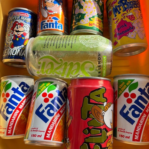 90-luvun tölkkejä, esimerkiksi keräilyyn tai koristeiksi. Mukana mm. fanta, pepsi, sprite ja cocacola. Voi ostaa myös yksittäisenä.