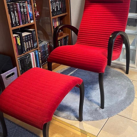 erittäin siisti ja tyylikäs Askon Harlekiini-lepotuoli sekä siihen kuuluva rahi. Tämä kotimainen klassikko on tunnettu erinomaisesta istuinmukavuudestaan ja ergonomisesta muotoilustaan.