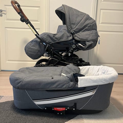 Edge Duo -malli. Käytettynä ostettut rattaat mutta edelleen toimivat yhdistelmävaunut. Monipuolinen kokonaisuus. Kangasosat on irroitettavissa ja pestävissä ja ne on pesty hajusteettomalla pesuaineella käytön jälkeen. Isot ilmatäytteiset renkaat kulkevat hyvin kuoppaisella tiellä ja talvella lumessa. Yhden renkaannsisäkumia on jouduttu korjaamaan mutta ilmat ovat pysyneet. Käytönjälkiä on jonkinverran. Kissatalous ja vain nouto.