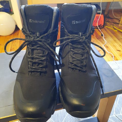 Miesten kengät, koko 45. Väriltään mustat, nauhakiinnitys ja paksu kumipohja, jossa karkea kuviointi paremman pidon takaamiseksi. Sopivat ulkoiluun ja retkeilyyn vaihtelevissa maasto-olosuhteissa.