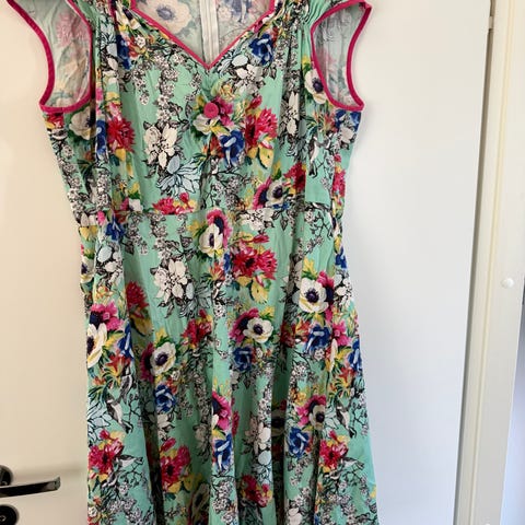 Ihana Lady Vintage-merkkinen kellohelmainen mekko. Vyötäröllä solmittava nauha, vetoketju takana.