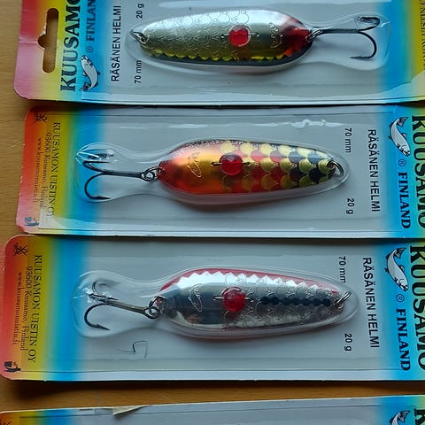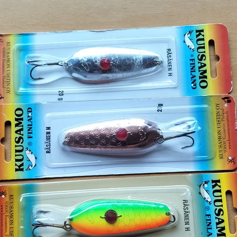 Myydään 6kpl paketti Kuusamon uistimia, kunto käyttämättömästä käytettyyn.