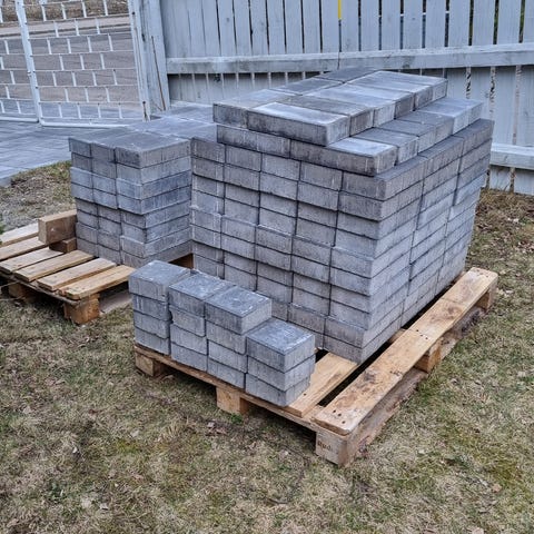 Myydään Rudus Luotokivi 336x246x80mm, profiloitu, mustaharmaa. Lavassa on joitain leikattuja laattoja, mutta iso osa ehjiä. Arviolta lavassa jäljellä noin 4 neliötä. Kivet sijaitsevat Tampereen ja Ylöjärven rajalla. Voin nouto.