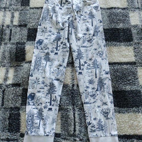 Polarn O. Pyret lasten yöasu, koko 134/140cm (noin 8–10 vuotta). Materiaalina puuvilla. Housuissa on kirjava, luontoaiheinen kuosi ja joustava kuminauhavyötärö. Ihanan pehmeä kangas edelleen. Myös nouto onnistuu Espoo Tillinmäki.