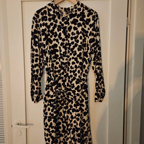 Ihana kirjava paitamekko, jossa mukana vyö. Kangas on paksua lyocellia ja tuntuu ihanan viileältä. Ei myöskään rypisty helposti.
