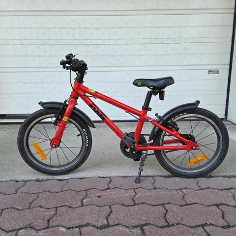 Todella vähän käytetty laadukas lastenpyörä. Rungossa ei oikeastaan mitään jälkiä ja suojateippiä asennettu kriittisiin paikkoihin. Taitaa ainoat esteettiset jäljet olla jarukahvoissa. Ei löytänyt merkkiin Frogia ilmoitusta tehdessä, joten siksi lukee siinä Woom. Nouto Klaukkalasta.