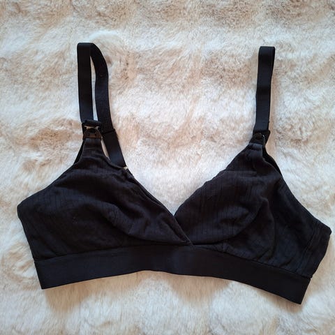 Lindexin mustat imetysliivit, koko M. Noin parin kuukauden ajan käytössä olleet. Viimeinen kuva ylivalotettu, niin näkee kankaan ribbikuvioinnin paremmin.