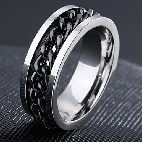 Sisäkoko noin 22.2mm. Pyörivä Devils eyes teräs sormus. Musta.