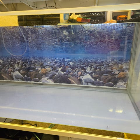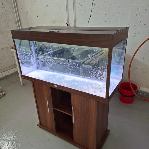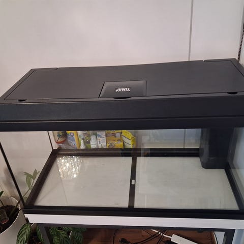 Akvaario 65x33x36. Iso hyvin lisääntyvä parvi juovaperhosnuoliaisia, muutama piikkisilmä ja albiinomonninen. Mukaan ruuat, vedenparannusaineet yms. Fluvalin valaisin johon saa säädettyä ja ajastettua puhelimen sovelluksella vaikka minkälaisen valaistuksen, auringonlaskut ja -nousut yms.