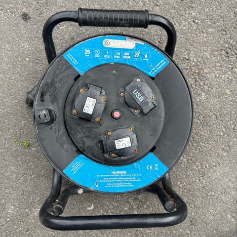 Uudenveroinen järeä kaapelikela metallirungolla ja H07RN-F 3x2,5S kaapelilla. Pituus 33m.