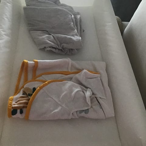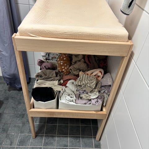 Hoitoalusta tosi siisti, sinivalkoinen päällinen.