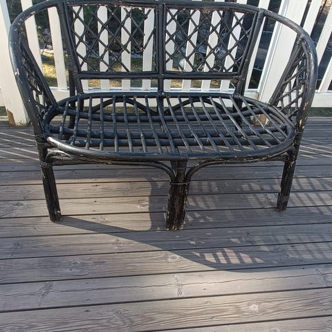 Myydään mustat polyrottinki sohva ja tuolit. Tuolit hyväkuntoiset ja ehjät. Sohvan vasemmalta sivulta polyrottinki mennyt rikki ja oikea etujalka myös osittain rikki. Sohva on näistä huolimatta istumakelpoinen ja tukeva.