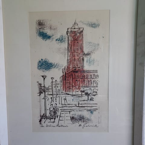 Grafiikkaa 1960-luvun Berliinistä. Litografia, taiteilijan signeeraama. Kehystettynä, lasikehys 53x43 cm.
