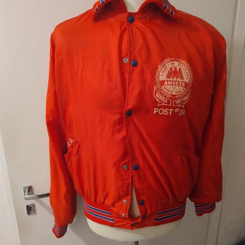 Leimat näkyvät yhä upeasti ja takki on suurin osin kunnossa. Kevyttä likaa ja käytönjälkeä löytää.