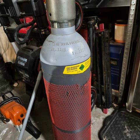 Kuvien mukainen voimavirta käyttöinen mig, 6 kg hiilidioksidi pullolla (aika tyhjä) ja 0,8 hitsauslankarullalla. Toimii vain yhdellä asetuksella olisko ollut 3 tai 5 asetus.