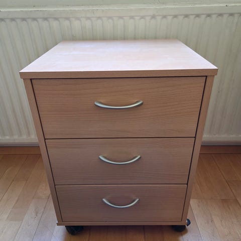 Kiva keltaiseksi maalattu lipasto. Alimman laatikon pohja puuttuu ja kannesta irtoaa pintaviiluja, muutamia yms. Leveys 66,korkeus 67,5 ja syvyys 39,5 (noin mitat).