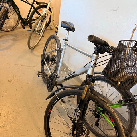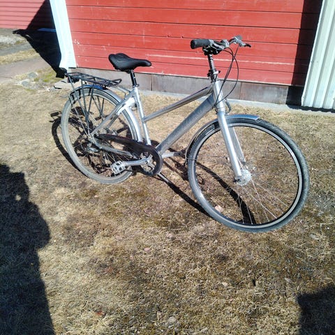 Myydään 28 tuumaisilla renkailla ja vannejarruilla oleva pyörä.