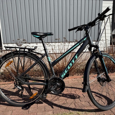 Scott hybridipyörä unisex-käyttöön. Runkokoko L ja 28" (700c) kiekot. Sopii yleispyöräksi kaupunki- ja työmatka-ajoon sekä kevyille retkille. Pyörässä on suora ohjaustanko ja kapea rengastus, jotka tukevat tehokasta ajoa päällystetyillä teillä.