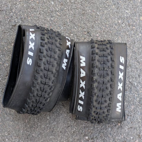 Myyntiin muutema kilometriä ajetut Maxxis Minion DHR II EXO TR renkaat. On turhan rouheet omaan käyttöön.