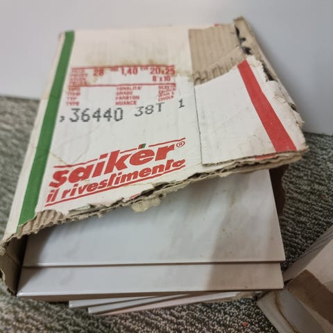 Isompaa laattaa 33x33cm löytyy reilu 6,5neliötä ja pienempää 16,5x16,5cm löytyy n.1,2neliötä.