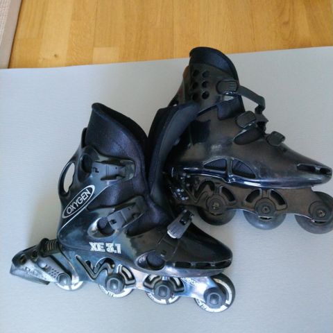 K2 Velocity -rullaluistimet koossa 39,5. Väri pääosin musta harmailla ja vaaleansinisillä yksityiskohdilla. Kunto on kohtalainen ja näkyy käytön jälkiä, mutta kuitenkin käyttökelpoiset.