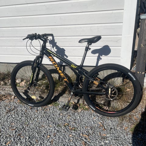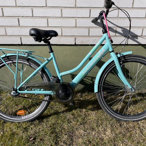Kolme vaihdetta. Kulumaa on, mutta täysin toimiva pyörä.