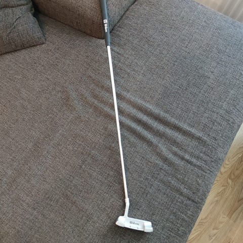 Four-D golf-putteri. Mallet-tyylinen putterin lapa, jossa kohdistusviivat helpottamaan tähtäystä.