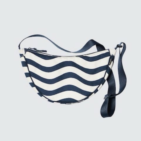 Myydään kuvassa oleva Marimekko & Uniqlo yhteismalliston olkalaukku/crossbody. Päälisen materiaali: puuvilla kangas (100 %) ja vuorin: kierrätetty polyester (100 %).Laukussa ruskea-valkoinen aaltokuvio. Säädettävä olkahihna ja vetoketjukiinnitys. Sisäpuolella on kaksi pientä avotaskua.