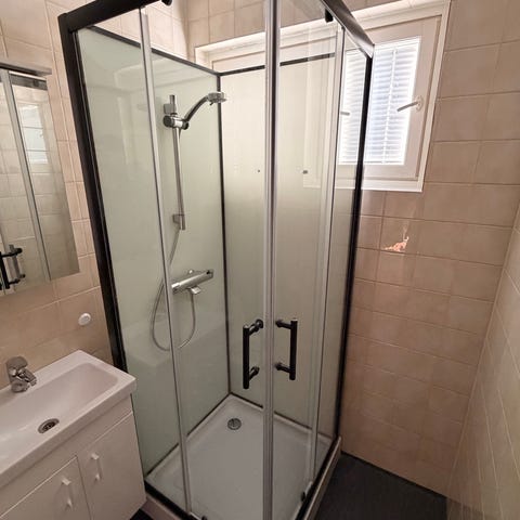 Suihkukaapin harmaat lasit,