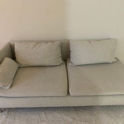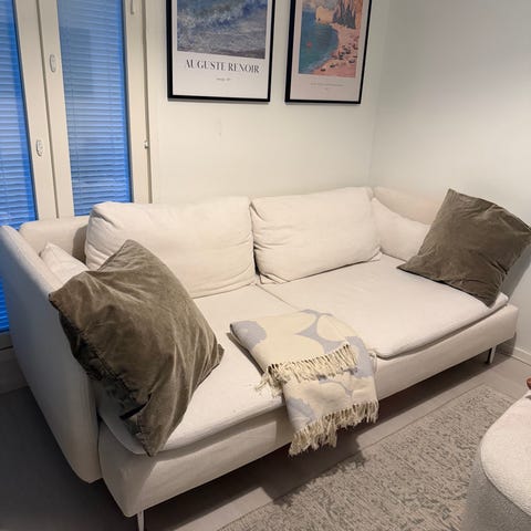 2 vuotta sitten Ikeasta ostettu söderhamn nojatuoli jossa tonerud-harmaa päälliset. Sohva on tahraton, mutta pientä jälkeä kahdessa kulmassa hoitokissojen vuoksi. Sohva pestään tekstiilipesurilla ennen luovutusta. Nouto ilola.