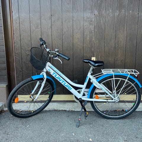 Viimeiset pari vuotta varastossa seisonut tyttöjen 7- vaihteinen Tunturi. Huollettu siitä edellisenä kesänä pyörähuollossa. Ulkoisesti löytyy kolhua jonkin verran ja satulassa molemmin puolin halkeama.
