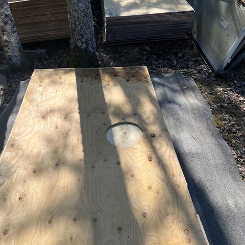 15 mm paksuisia, kerran käytettyjä vanerilevyjä.