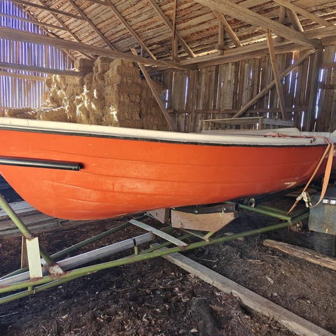 Annetaan soutuvene, ei tietoa merikelpoisuudesta mutta nopealla vilkaisulla ei näkynyt reikiä. Tullut mökkikaupan mukana ja ollut nurinpäin ulkosäilytyksessä vuosia. Nouto ja kantajat mukaan, sijaitsee metsäisessä maastossa rinteessä.