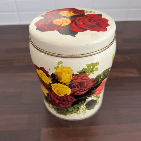 Ihana lahja ystävälle: Vanha ruusukuvioinen säilytyspurkki