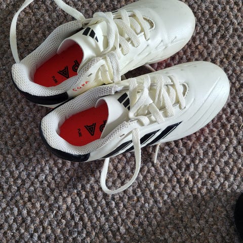 Adidas jalkapallokengät lapsille, koko EU 30 (US 12, UK 11,5). Väri kirkkaan keltainen mustilla yksityiskohdilla. Päällinen on kuvioitu ja nauhakiinnitys tuo säädettävyyttä. Pohjassa on tasainen, kuvioitu kumipohja, joka soveltuu erityisesti koviin ja tasaisiin alustoihin, kuten tekonurmelle tai sisäpelialustoille. Kengät on suunniteltu jalkapallon pelaamiseen ja muuhun pallopeleihin.