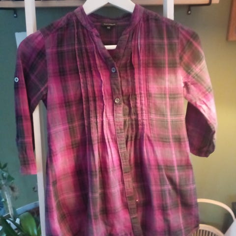 Tyttöjen paita. Kuvissa näkyy kohtia, jossa kangas on ohuempaa.