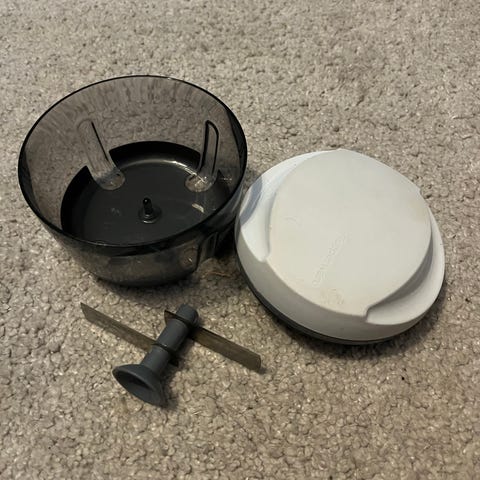 Tupperware monitoimisilppuri 730ml, punainen muovi. Tuote koostuu läpinäkyvästä punaisesta kulhosta, kannesta vetomekanismilla sekä useista irrotettavista osista, kuten teräosasta ja sekoitusosasta. Soveltuu esimerkiksi vihannesten, sipuli ,yrttien ja muiden elintarvikkeiden silppuamiseen ja sekoittamiseen keittiössä. Muovinen kulho ja kannen rakenne on suunniteltu käsikäyttöiseksi ilman sähköä.