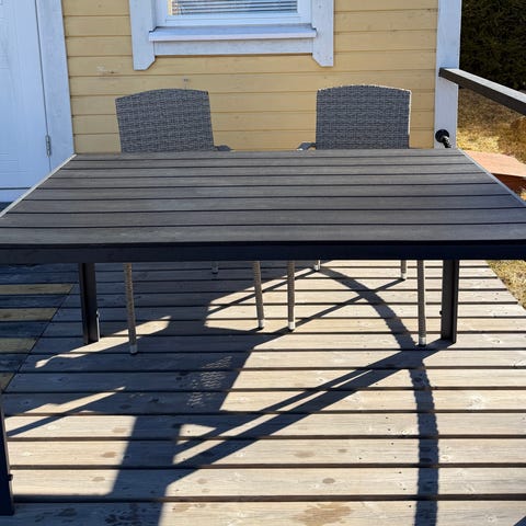 Myydään hyväkuntoinen puutarhapöytä. Halkaisija 90 cm ja korkeus 72 cm. Nouto Ala-Temmekseltä. Maksu etukäteen tilille tai käteisellä noudettaessa.
