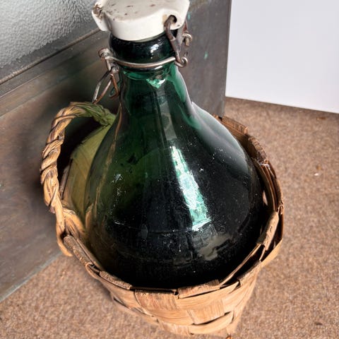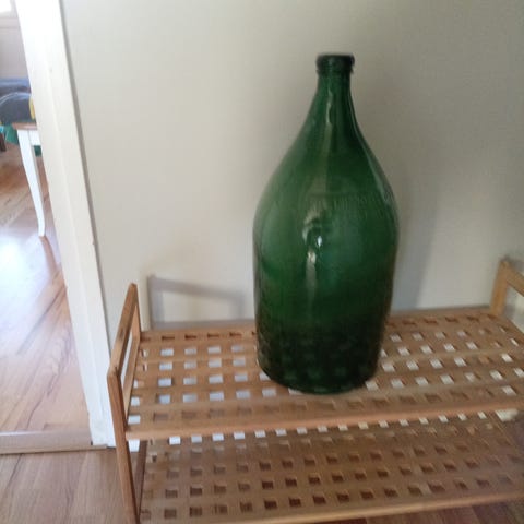 Vihreä lasinen rypäle pullo. Pölyinen mutta ehjä.