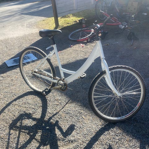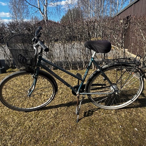Helkama kaupunkipyörä naisille, runkokoko 59 cm ja 28" (700c) -kiekot. Pyörässä on matala runko helpottamaan kyytiin nousua. Varusteluun kuuluvat lokasuojat, tavarateline, seisontatuki sekä etuvalo. Satula on kuvien mukaisesti repeytynyt. Soveltuu arkiseen kaupunkiajoon ja työmatkoille.