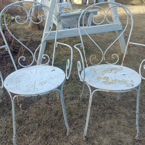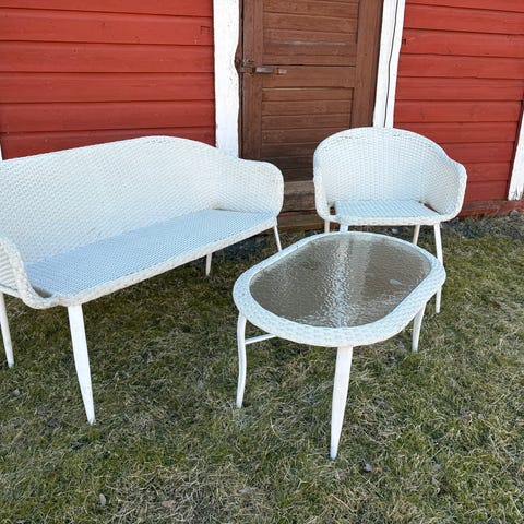 Rottinkituoli lapselle tai muuten pienipyllyiselle ulko- tai sisäkäyttöön. Tuoli on käsinmaalattu punaiseksi ja siniseksi, ja siinä on koristeellisia pilkku- ja kuviomaalauksia selkänojassa, käsinojissa ja jaloissa. Maali on useasta kohdasta kulunut. Vain nouto.