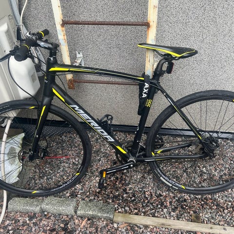 Merida hybridipyörä unisex-käyttöön. Rungon koko XS ja 28" (700c) kiekot. Pyörässä on suora ohjaustanko, hydrauliset levyjarrut. Varustettu lokasuojilla. Soveltuu arkiajoon ja työmatkoille sekä yleiseen kaupunki- ja kuntopyöräilyyn. Runkomateriaalima alumiini ja etu haarukka hiilikuitua. Todella kevyt pyörä. Koeajaa saa Helsingin arabianrannassa.