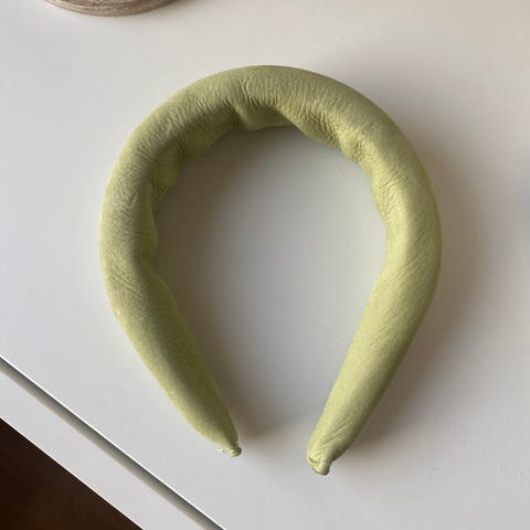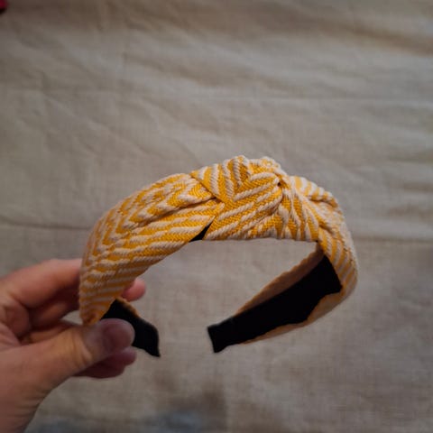 Suomessa valmistettu Fmam-merkin hiuspanta. Materiaali vegaanista "ananasnahkaa" pinatexia. Hyvä kunto, hieman vaalentumaa sisäpuolella. Käytetty alle 10 kertaa. Materiaali luonnostaan ryppyinen.